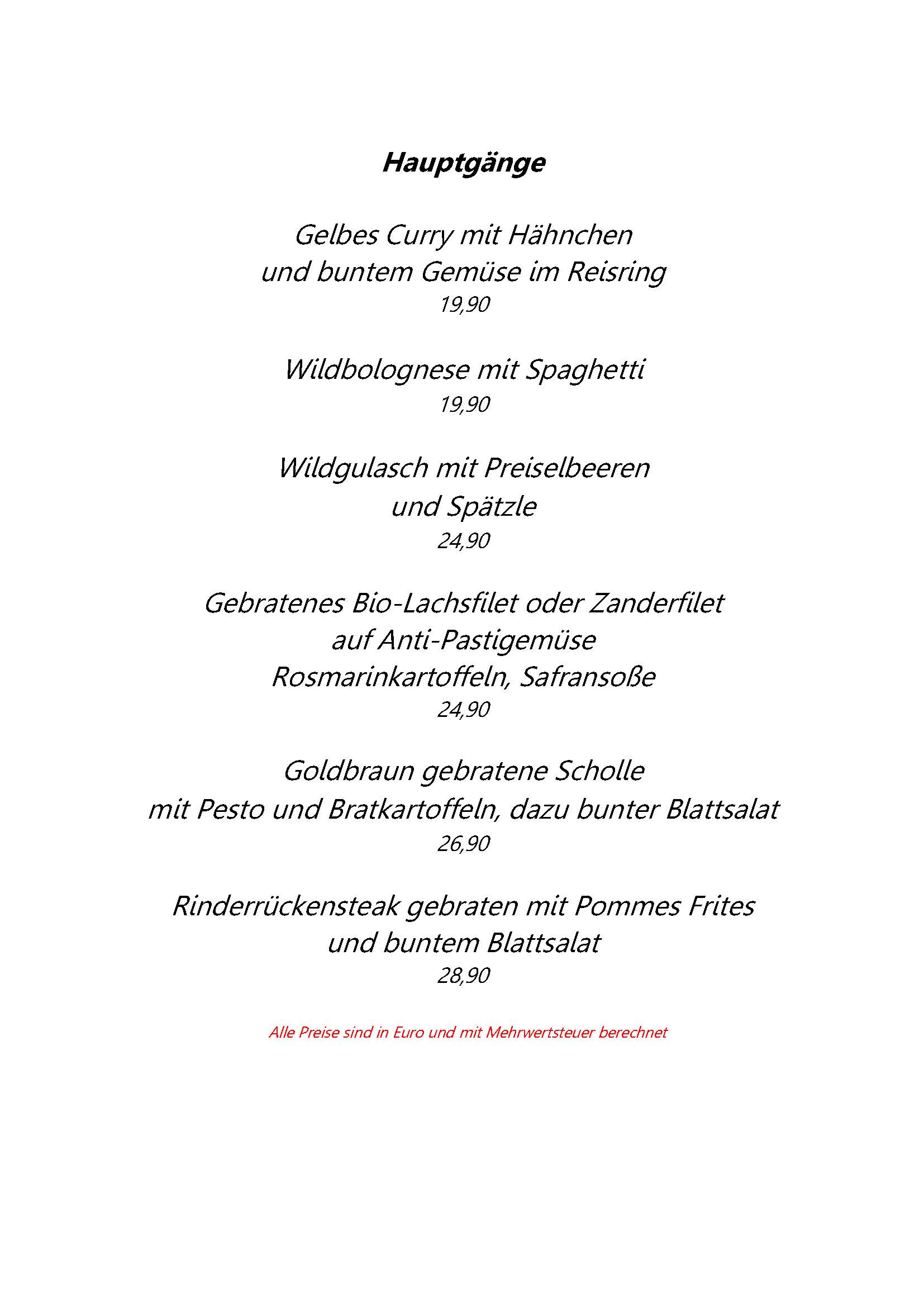 • Speisekarte